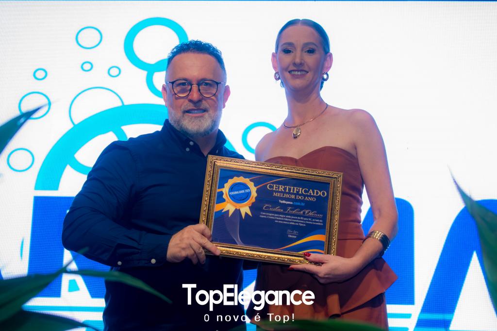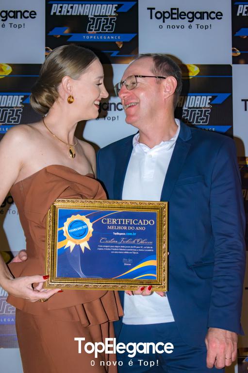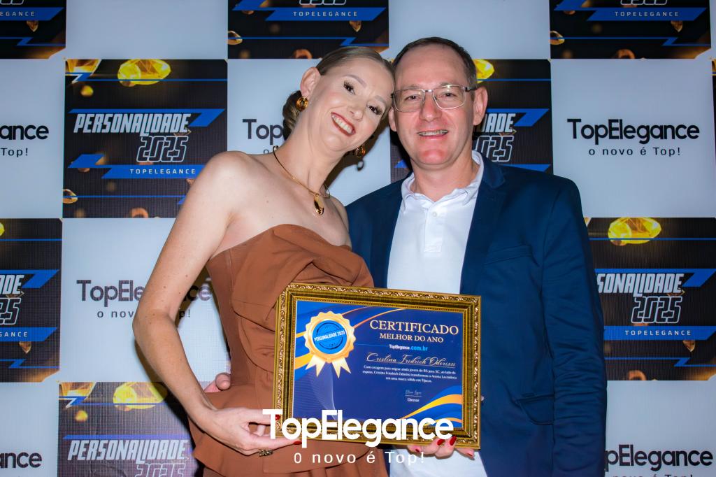 Em uma noite dedicada a reconhecer histórias de esforço e evolução, a empresária Cristina Friedrich Odorissi, sócia-proprietária da Aroma Lavanderia ao lado do marido, Jarbas Odorissi, recebeu o título de Personalidade TopElegance 2025, no último dia 03 de dezembro.