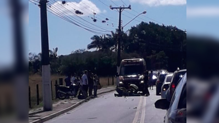 Equipes do corpo de Bombeiros e Samu (Serviço de Atendimento Móvel e Urgência), prestaram atendimentos ao motociclista, identificado pelas iniciais W.M. Com impacto da batida, ele sofreu traumatismo craniano em cefálico e suspeita de fratura nas pernas, devido à gravidade do caso a vítima foi conduzida pelo Helicóptero Águia da Polícia Militar ao Hospital Marieta Konder Bornhausen, em Itajaí.
