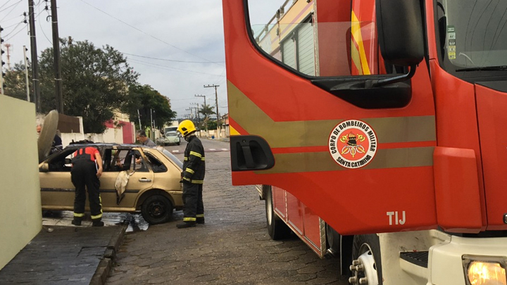 Uma criança foi retirada às pressas de um veículo em chamas, na tarde desta terça-feira (16), em Tijucas. De acordo com informações de populares, a vítima sofreu queimaduras na mão e no braço.