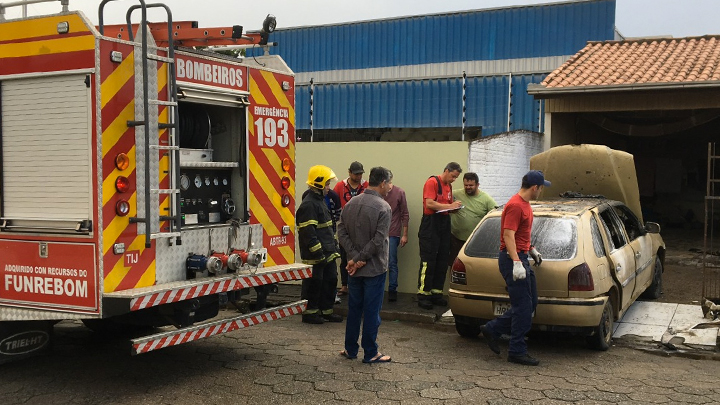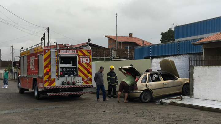 As causas do incêndio seguem desconhecidas. O automóvel VW/Gol ficou destruído.