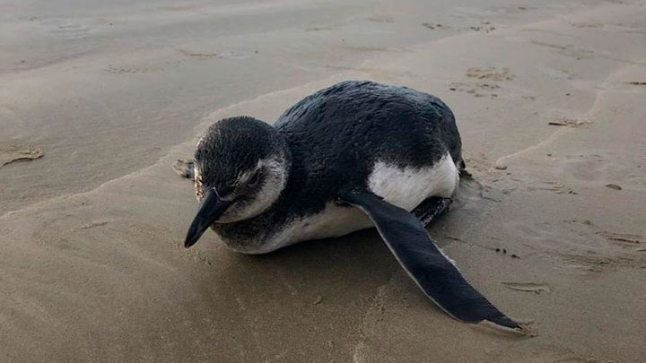Um visitante inesperado chamou a atenção de banhistas na manhã desta quinta-feira (18), na praia Central, de Itapema. Um pinguim foi encontrado na faixa de areia da praia por populares.