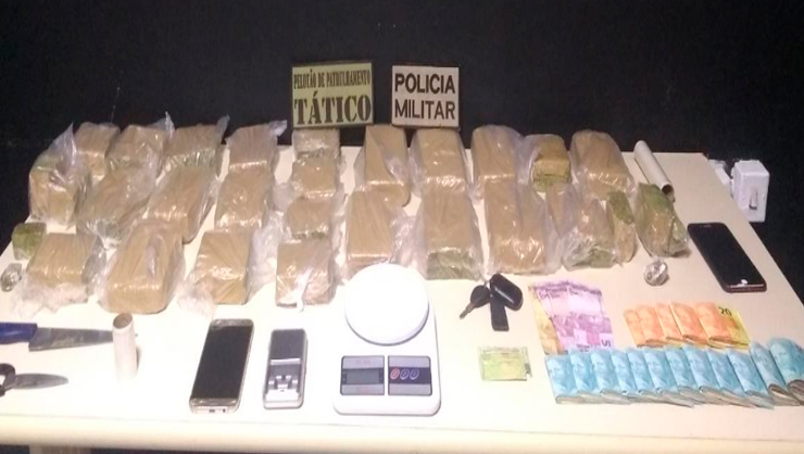 De acordo com os policiais, o flagrante ocorreu após a abordagem do condutor de um automóvel Renault/Clio, que transportava 3.500 kg de maconha e R$ 65 em espécie. O abordado teria relatado aos policiais que estaria fazendo uma ponte entre dois masculinos que estariam negociando a droga.