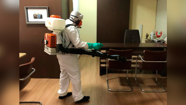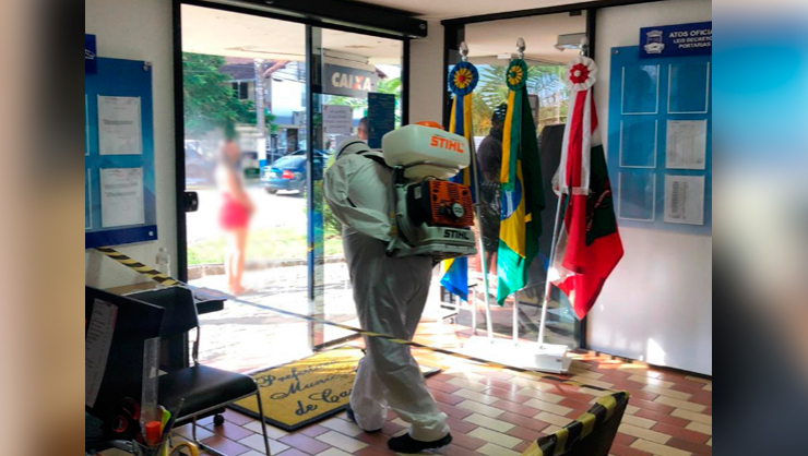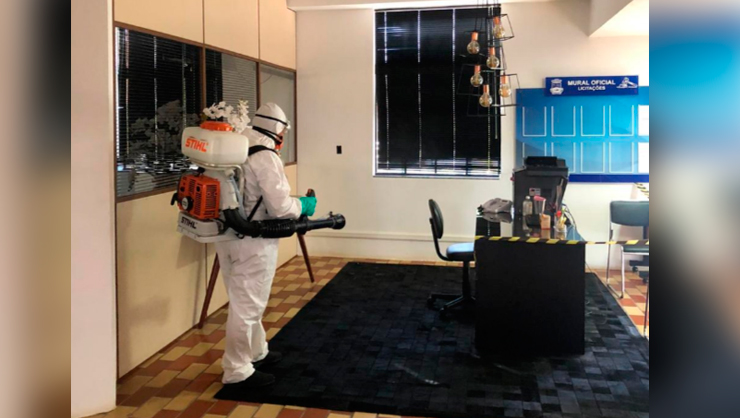 Nesta sexta-feira (19) a Administração Municipal de Canelinha realizou o processo de sanitização de todo o prédio da prefeitura. A ação emergencial se fez necessária após a confirmação do teste positivo para Covid-19 do prefeito Moacir Montibeler, realizado na última quinta-feira (18).