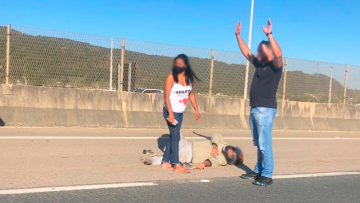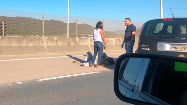 Uma equipe de socorristas foi acionada para o resgate da vítima que estava caída na via.