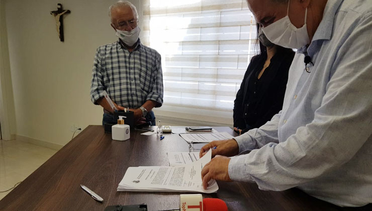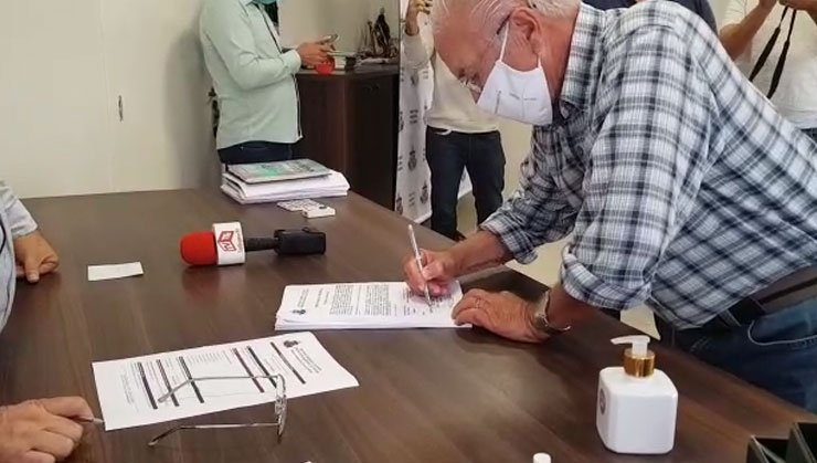 Aconteceu na manhã desta quinta-feira, 25 de junho, no gabinete do prefeito Eloi Mariano Rocha, a assinatura da ordem de serviço da obra de pavimentação asfáltica da via que liga a rodovia SC-410 a BR-101, trecho conhecido como Beira Rio.