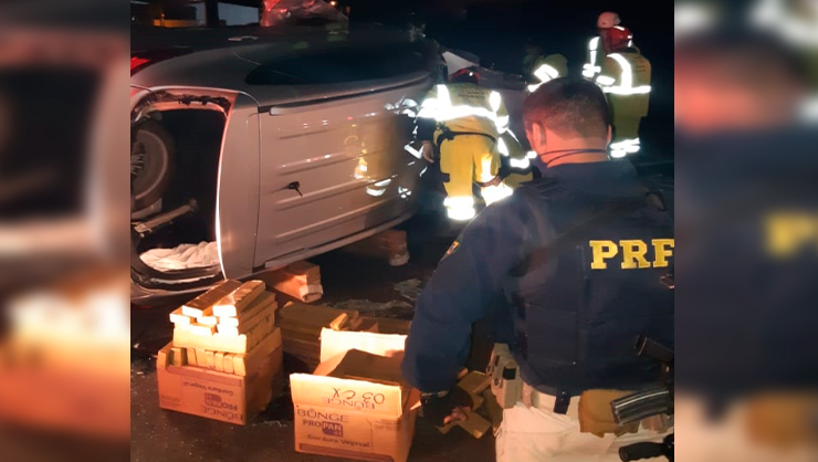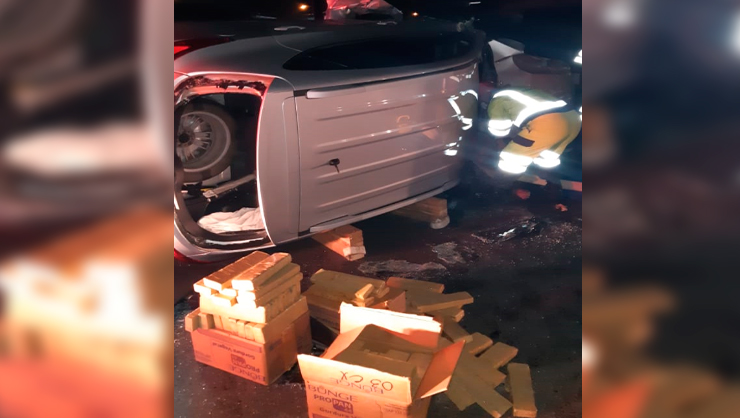 Os PRFs pararam logo atrás e rapidamente prenderam o motorista de 30 anos. Durante a prisão do motorista um PRF se feriu nos estilhaços do para-brisa dianteiro que quebrou. Dentro do veículo os policiais encontraram 113 tabletes de maconha, pesando aproximadamente 103 kg. O suspeito foi socorrido, preso e encaminhado para a Polícia Civil de Itajaí.