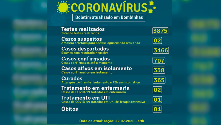 A primeira morte por Covid-19 foi registrada nesta quarta-feira (22), em Bombinhas. A informação foi divulgada pelo prefeito Paulo Henrique Dalago Muller, em suas redes sociais.