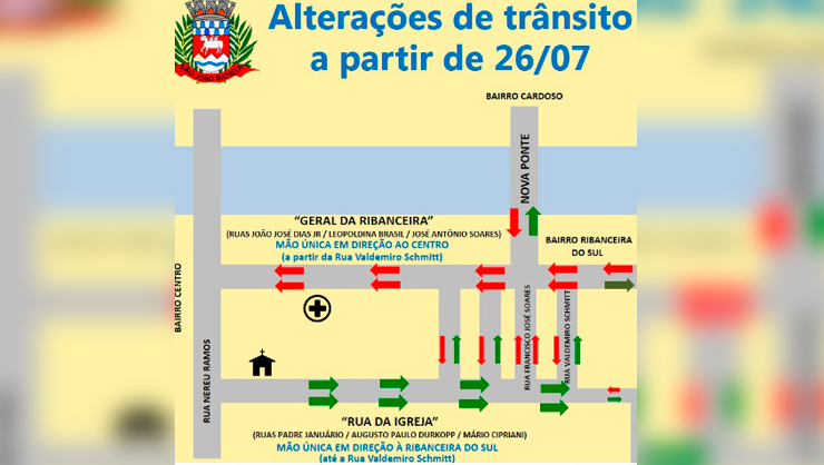 Já as ruas José Antônio Soares e Leopoldina Brasil, a partir do cruzamento com a Rua Valdemiro Schmitt, terão fluxo de mão única no sentido Ribanceira do Sul-Centro.