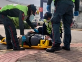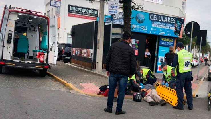 Uma equipe do Corpo de Bombeiros foi acionada e ao chegar no local, realizou os primeiros atendimentos. Posteriormente o condutor da moto foi conduzido ao Hospital São José para uma avaliação médica.