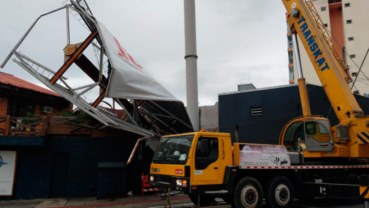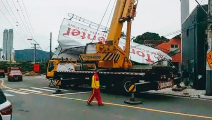 Um homem foi socorrido após um outdoor cair em cima de uma residência, em Balneário Camboriú. O acidente de trabalho aconteceu na manhã desta quarta-feira (29), na rua 3700.