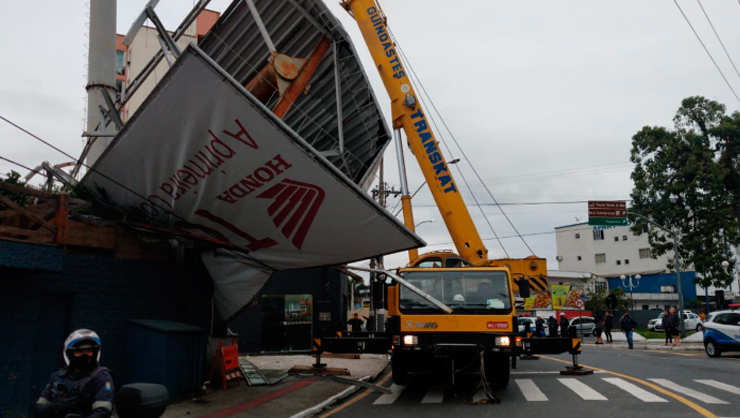 De acordo com informações de testemunhas, o funcionário retirava a placa no momento em que ele foi atingido pela mesma.
