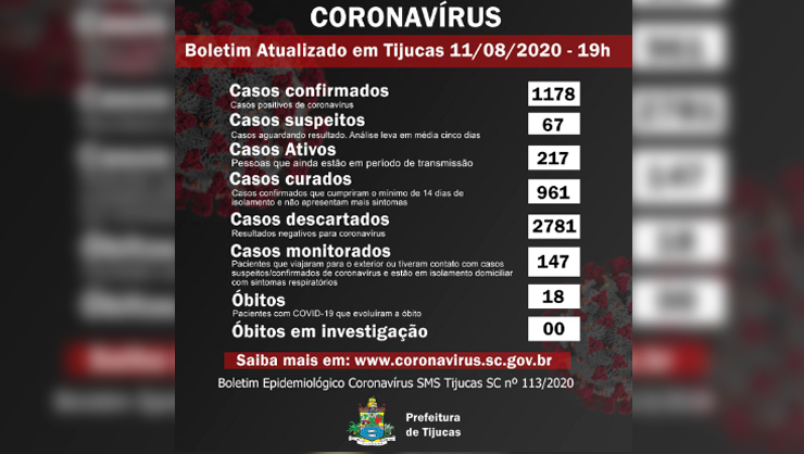 Nesta terça-feira (11) o município de Tijucas teve dois novos óbitos por Covid-19. Trata-se de uma idosa de 78 anos e outra de 66 anos.