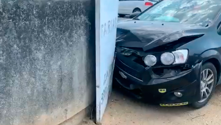 Com impacto da batida, o veículo Sonic foi arremessado contra o muro de uma residência.