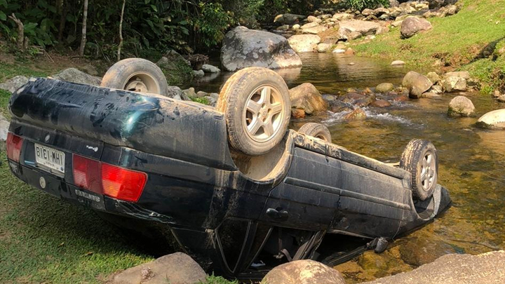 Um motorista perdeu o controle de direção do veículo e caiu na estação de captação de água em Tijucas. O acidente foi registrado por volta das 19h30min, do último sábado (12), no bairro Itinga.