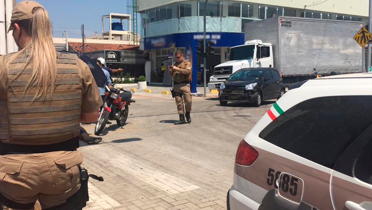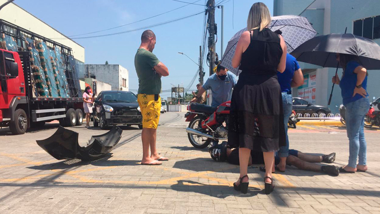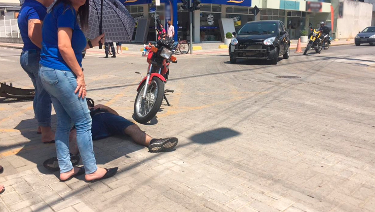 Um acidente entre carro e moto foi registrado na manhã desta quinta-feira 1º de outubro, na região central de Tijucas. A colisão, que deixou o motociclista ferido ocorreu na esquina das ruas Florianópolis e Leoberto Leal.