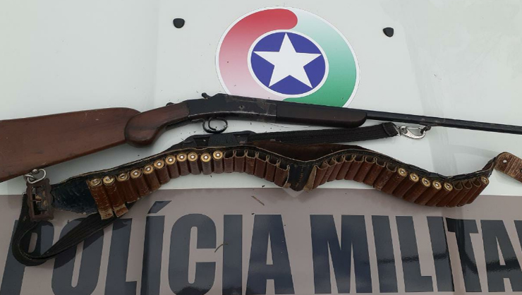 Ao chegar no logal a guarnição teria encontrado em posse do autor uma Carabina, Calibre 32, nº 175754, com um cartucho deflagrado, 01 cartucheira com 15 cartuchos calibre .32 intactos, 02 cartuchos calibre .32 deflagrados e 01 faca de serra em sua cintura.