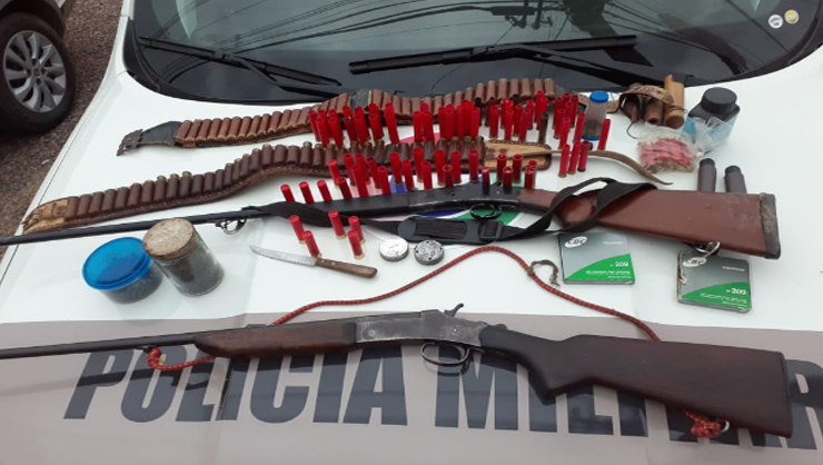 Na casa do detido, a polícia apreendeu ainda uma Carabina, Calibre 32, nº 567942, além de mais uma cartucheira, diversas munições intactas de calibres .32 e .36, diversos cartuchos vazios de calibre .28, .32 e .36, além de espoletas, chumbos e pólvora para realizar recargas de cartuchos.