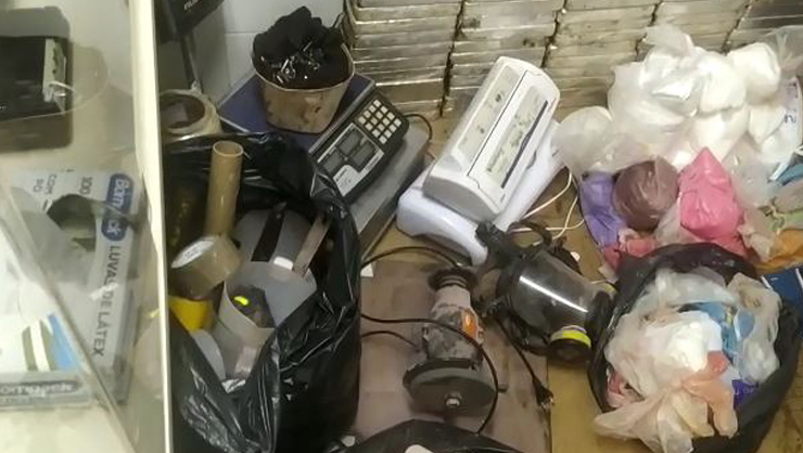 No local havia 203 quilos de cocaína, 111 quilos de crack, 270 gramas de MDMA (também conhecida como ecstasy), 6 tubos de lança perfume e ainda 19 quilos de insumos para produção da droga sintética. Havia também aproximadamente U$ 200 mil (dólares) em espécie e um montante em torno de R$ 5 milhões e meio de reais. Ainda um total de três carros, uma motocicleta e uma pistola 380, também foram apreendidos.