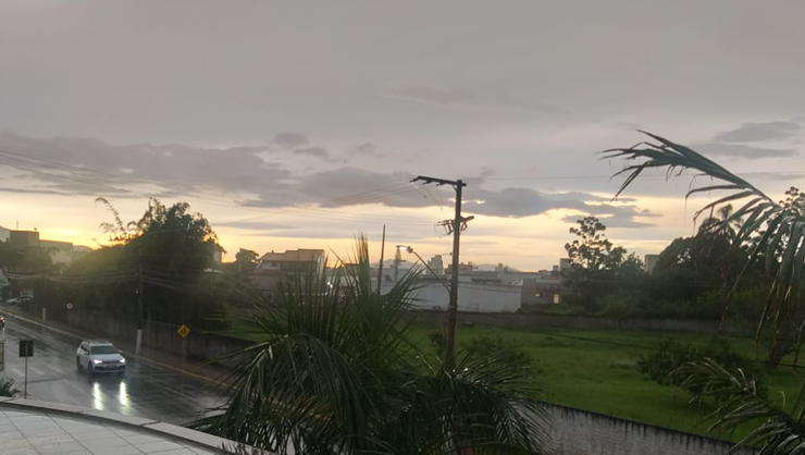 Uma forte chuva atingiu o Vale do Rio Tijucas no fim da tarde desta quarta-feira (27). O temporal acompanhado de fortes ventos pegou os moradores de surpresa após um dia com registros de temperaturas altas e sol.
