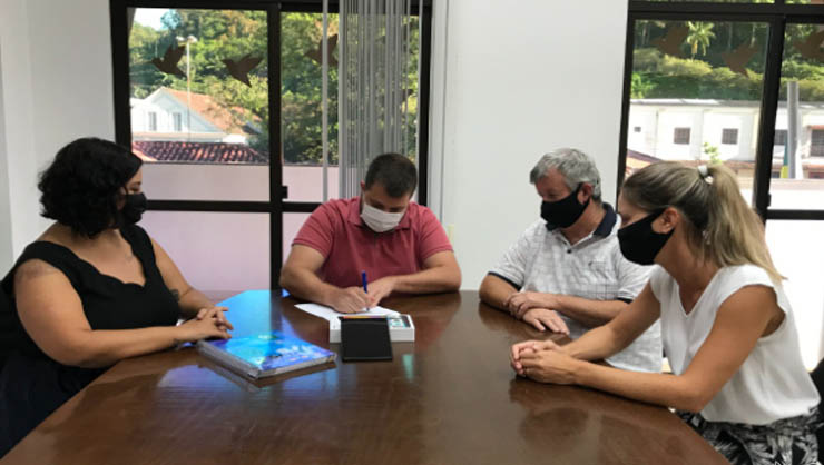 Nesta sexta-feira (05), o prefeito Tiago Dalsasso, o vice-prefeito, Moacir Dalla Brida e a secretária de educação, Graciela Darós Piffer, assinaram os contratos com o Sistema Lúdico de Ensino e com o Sistema de Ensino UniAvan (SEU).