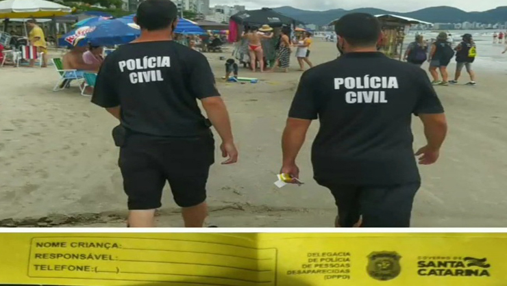 Pulseirinhas de identificação para crianças estão sendo distribuídas na praia de Itapema, por policiais civis de Santa Catarina. A ação faz parte da Operação Verão Seguro que é realizada anualmente pela instituição durante a temporada no litoral catarinense .