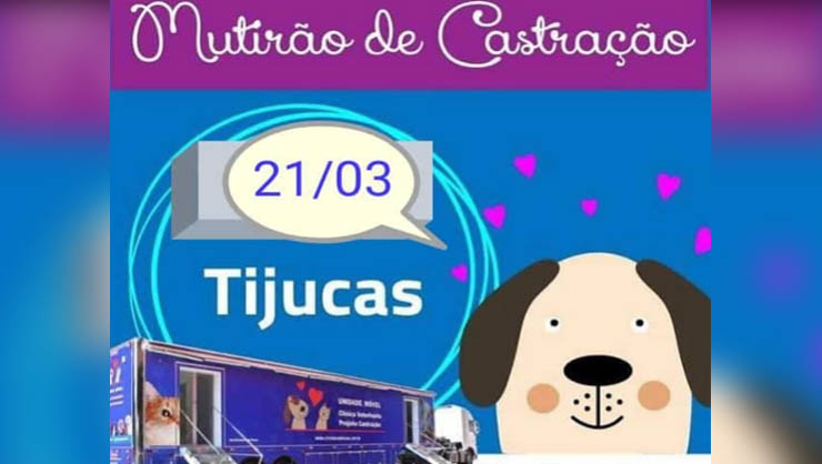 Um Mutirão de Castração de Cães e Gatos, será realizado em Tijucas no dia 21 de março. Um vale castração está será vendido a partir desta quinta-feira (18) das 14 às 18h, na sede da associação do Jardim Porto Belo (rua da academia do SESC) ou através dos WattsApp (48) 99822.7564.