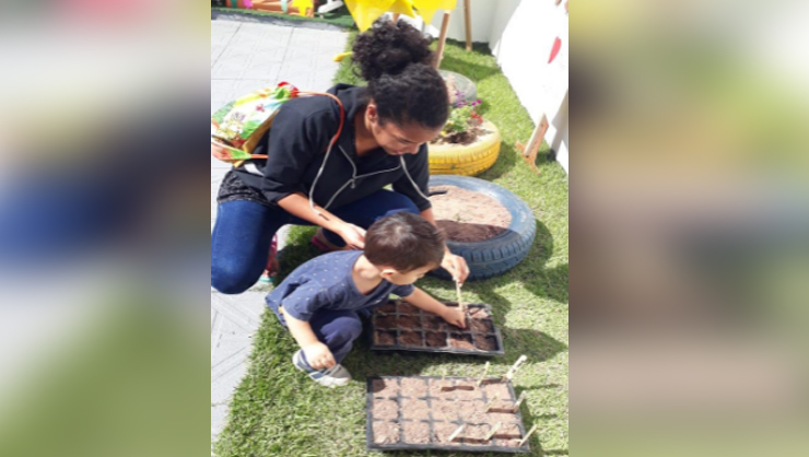 O Centro de Educação Infantil Mauri Afonso da Silva está desenvolvendo com alunos, pais e professores, o projeto ‘Planeta Terra: tudo que tem nela’. Entre as ações do projeto, está o plantio de girassóis.