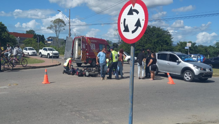 Uma colisão envolvendo carro e moto, deixou duas mulheres feridas na manhã desta quinta-feira (29), em Tijucas. O acidente ocorreu na rótula da rua Treze de Maio com a rua Antonio Bayer, na região central da cidade.