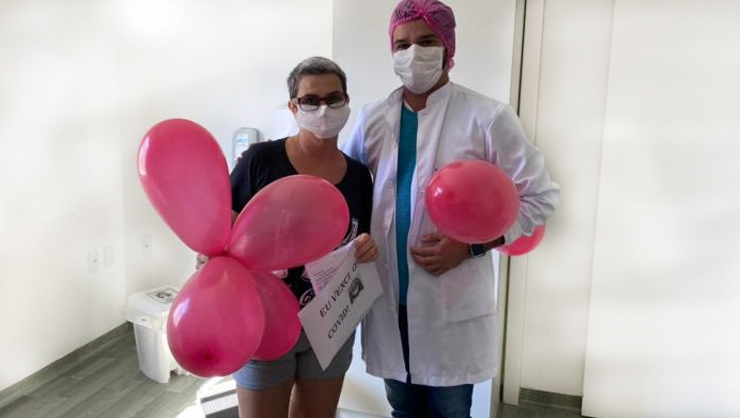 A alta hospitalar ocorreu na última quarta-feira (25). Os profissionais que compõem o corpo clinico comemoraram com balões e um cartaz a cura da saída da paciente.