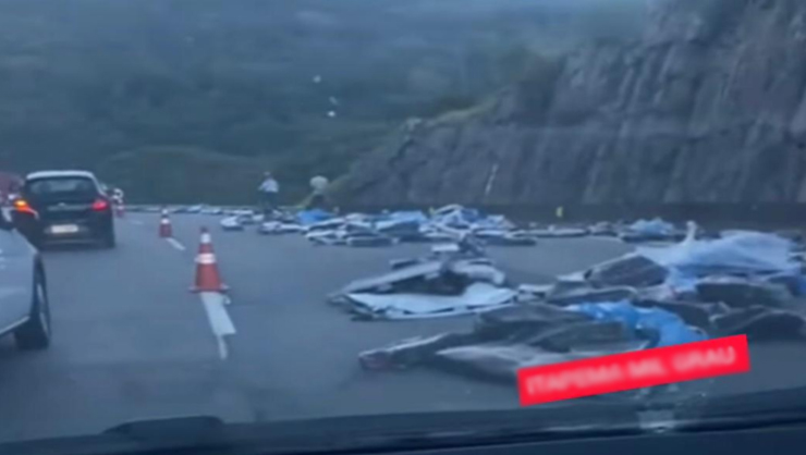 Na manhã desta sexta-feira (07) parte de uma carga de palhetes de ferro que estava sendo transportada em um caminhão caiu do veículo e deixou a BR-101 parcialmente interditada. O caso foi registrado por volta das 7h40min, na subida do Morro do Boi, em Balneário Camboriú.