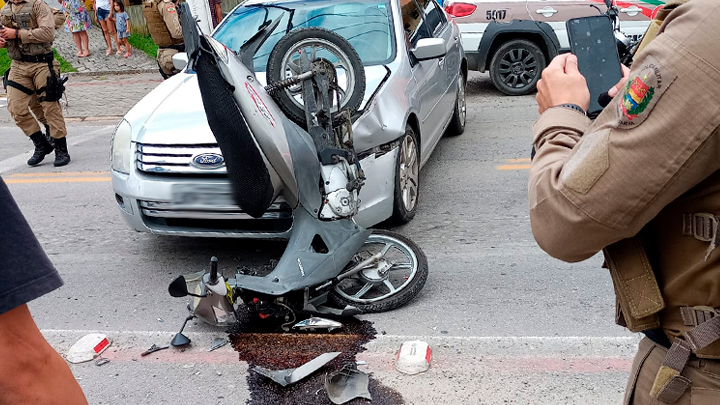 O condutor do carro não se feriu. Populares relataram aos policiais militares que ao sair de um estacionamento o motorista do Fusion não percebeu a aproximação da motociclista e acabou atingindo a vítima.