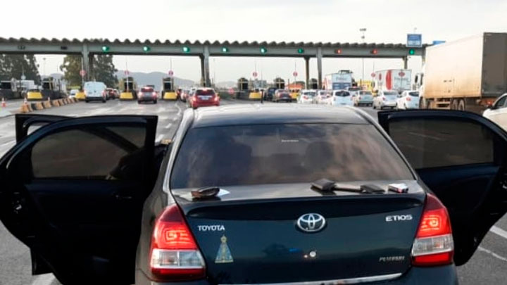 Investigações apontaram que o trio estaria em um Toyota/Etios no sentido norte da rodovia. Diante das informações, os policiais abordaram o veículo com placas de Campina Grande do Sul/PR, nas proximidades da praça de pedágio.