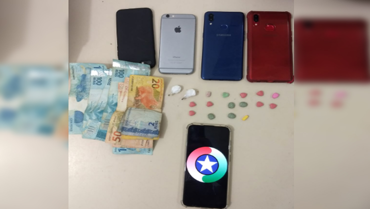 Com apoio de outras viaturas, a guarnição realizou buscas em um VW/Gol de propriedade de um dos indivíduos e localizou 4 aparelhos celulares, com mensagens e ligações que comprovaram a venda dos entorpecentes.