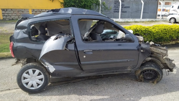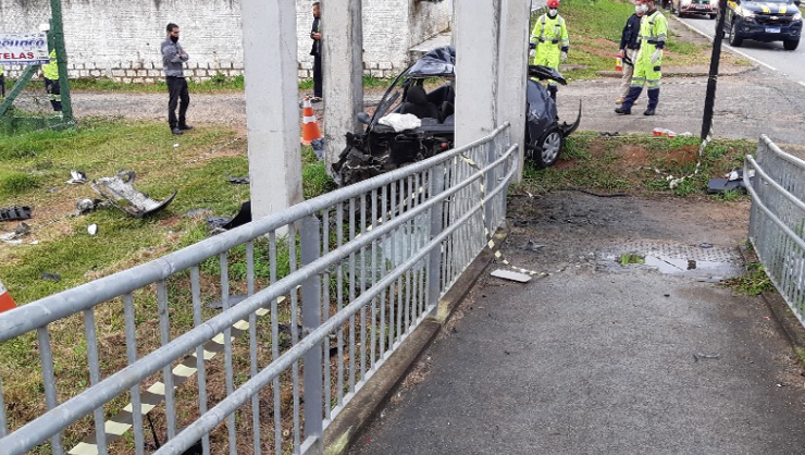 Segundo relato de testemunhas, o condutor do Renault/Clio com placas de Biguaçu, acabou perdendo o controle da direção, saiu da pista e colidiu contra uma estrutura de concreto de uma passarela. Com impacto da batida o veículo ficou completamente destruído.