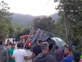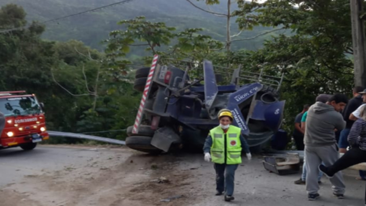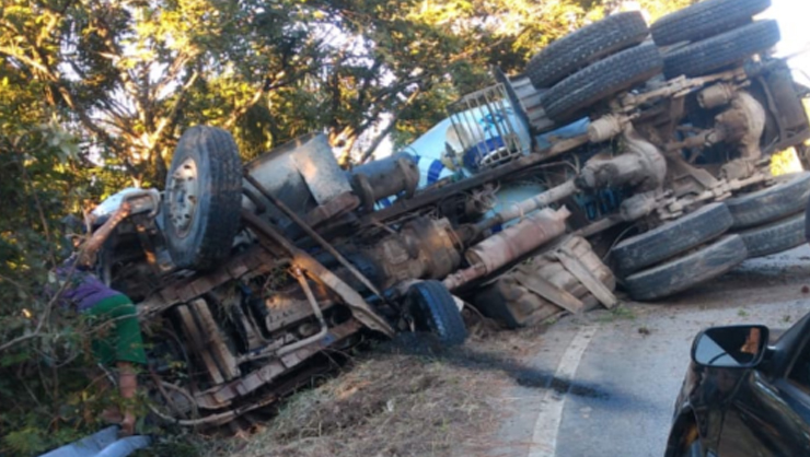 Testemunhas relataram que o caminhão tombou após o motorista perder o controle da direção do veículo. O caminhão estava carregado com cerca de 15 toneladas de concreto.