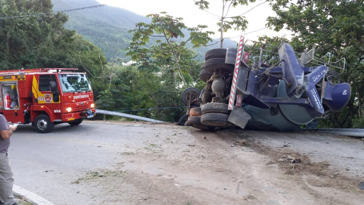 Um tombamento de um caminhão no Morro da Fazenda, em Governador Celso Ramos deixou um caminhoneiro ferido. O acidente ocorreu no fim da tarde desta terça-feira (25).