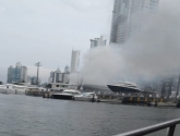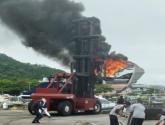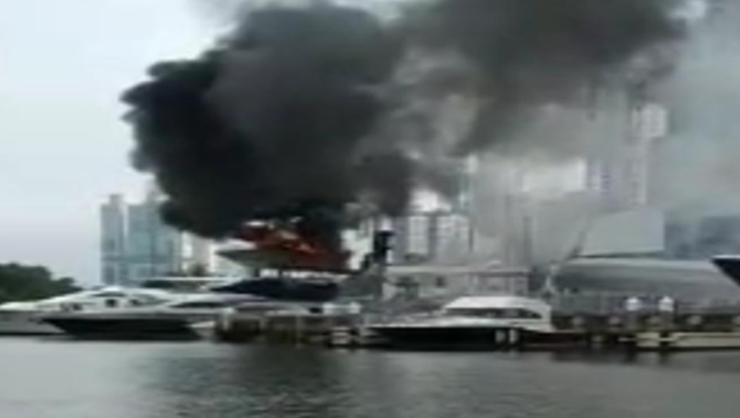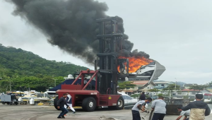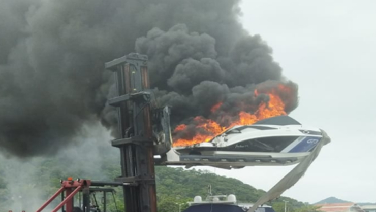 As chamas do incêndio foram combatidas pelos próprios funcionários da marina. Não houve feridos no local.