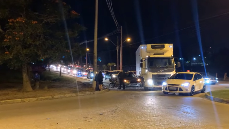 O trânsito ficou congestionado diante do horário de pico e houve o registro de filas.