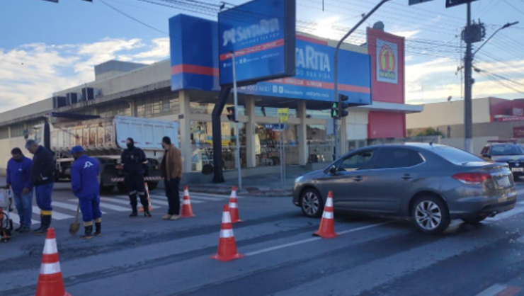 O local foi sinalizado com cones pela Ditran (Ditran Diretoria Municipal de Trânsito e Transporte), porém, motoristas devem ter a atenção redobrada.