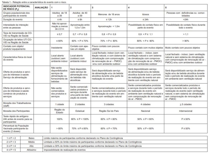 De acordo com as normas estabelecidas no novo regramento, os organizadores devem elaborar um plano de contingência e apresentá-lo à Diretoria de Vigilância Sanitária (DIVS/SES) para que seja avaliado. A regra vale para eventos em todos os níveis da matriz de risco estadual da Covid-19.