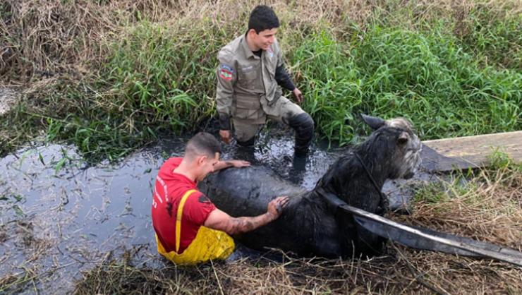 De acordo com informações de testemunhas, moradores próximos haviam amarrado a cabeça do animal para que ele não se afogasse na água. A equipe do GOR contou com o apoio do Corpo de Bombeiros Militar de Tijucas e de uma retroescavadeira para resgatar o animal.