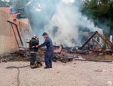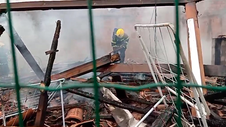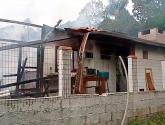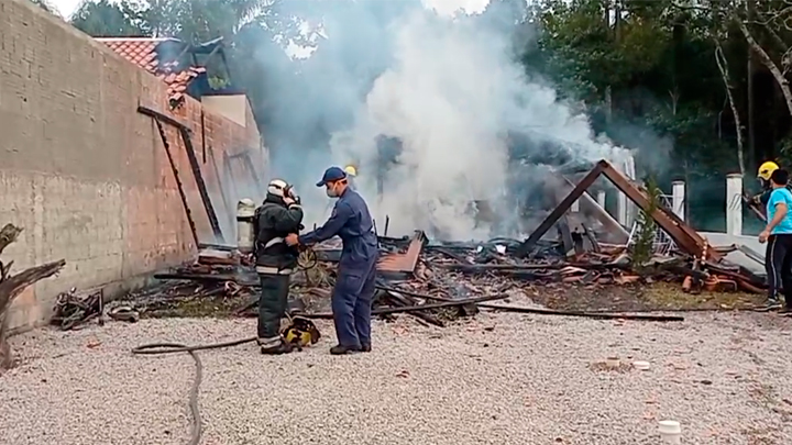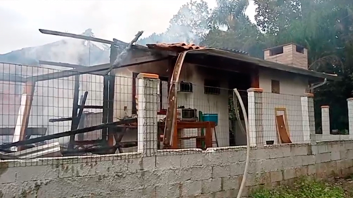 Uma casa ao lado também foi atingida pelo fogo e teve parte do telhado danificado. Moradores usaram a água de uma piscina para combater as chamas até a chegada dos bombeiros.