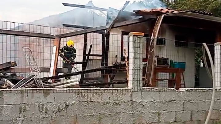 Uma casa ficou destruída em um incêndio registrado na manhã desta terça feira (27) no bairro Vila Nova, em Porto Belo. Segundo informações de testemunhas, um menino, de 10 anos, estava no local quando as chamas iniciaram.