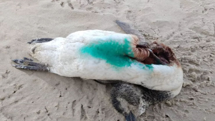 Os pinguins receberam uma marcação com spray não tóxico, para auxiliar na contagem das aves. Após o registro, os pinguins foram deixados na praia para servirem de alimento para outros bichos.