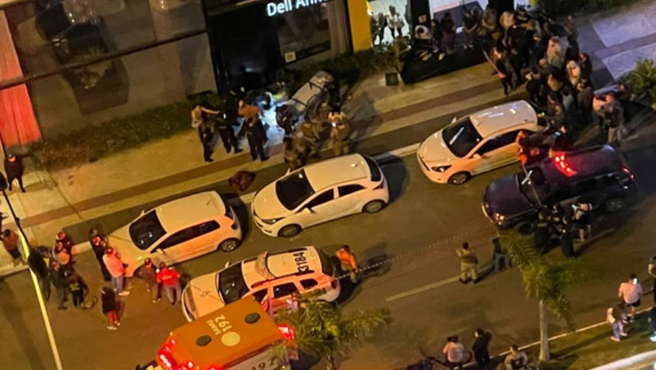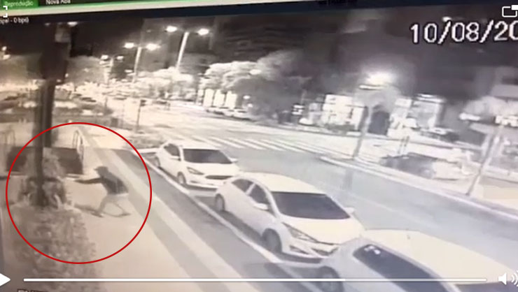 Um vídeo divulgado em redes sociais mostra o exato momento em que o autor dos disparos caminha pela calçada e ao avistar as vítimas se aproxima e dispara diversas vezes.