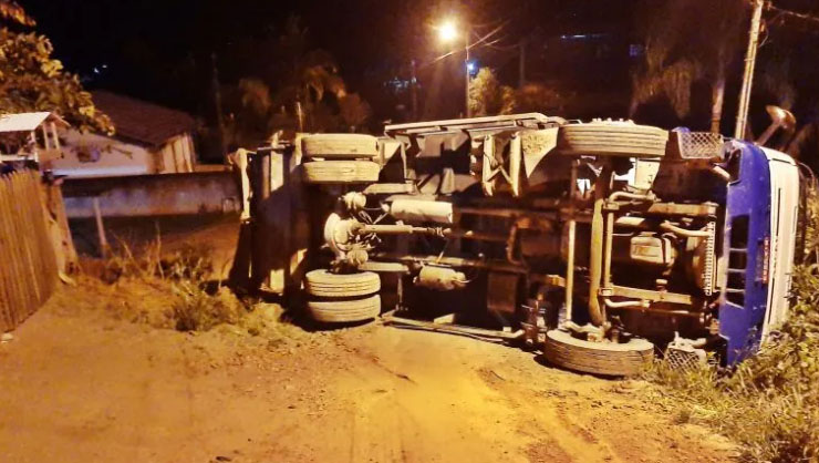 Uma equipe do Corpo de Bombeiros foi acionada na noite deste domingo (15) após um caminhão da coleta de lixo tombar em São João Batista. O acidente ocorreu por volta das 21h30min, no Loteamento Ramos.