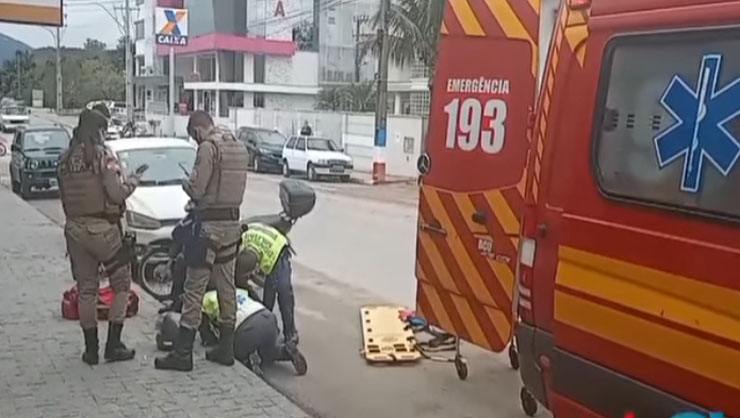 Com o impacto da batida, a mulher foi arremessada na via e sofreu diversos ferimentos pelo corpo. Uma equipe do Corpo de Bombeiros foi acionada para o resgate da vítima.