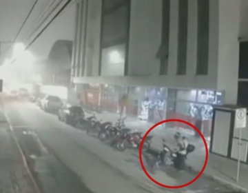Câmeras de videomonitoramento próximas ao local registraram a ação, mas não conseguiram captar a placa do carro.