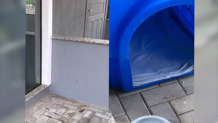 A mulher pede que o homem devolva a casinha já que a cachorra, identificada como Alcione, mora nas ruas e precisa do local para se abrigar.