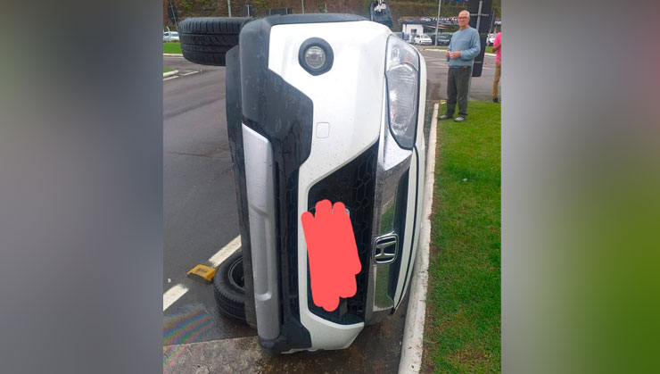 Com impacto da batida, um dos carros, o Honda/WR-V, capotou na via e acabou parando com as rodagens de lado. Por sorte, o condutor, um homem de 56 anos, não se feriu.